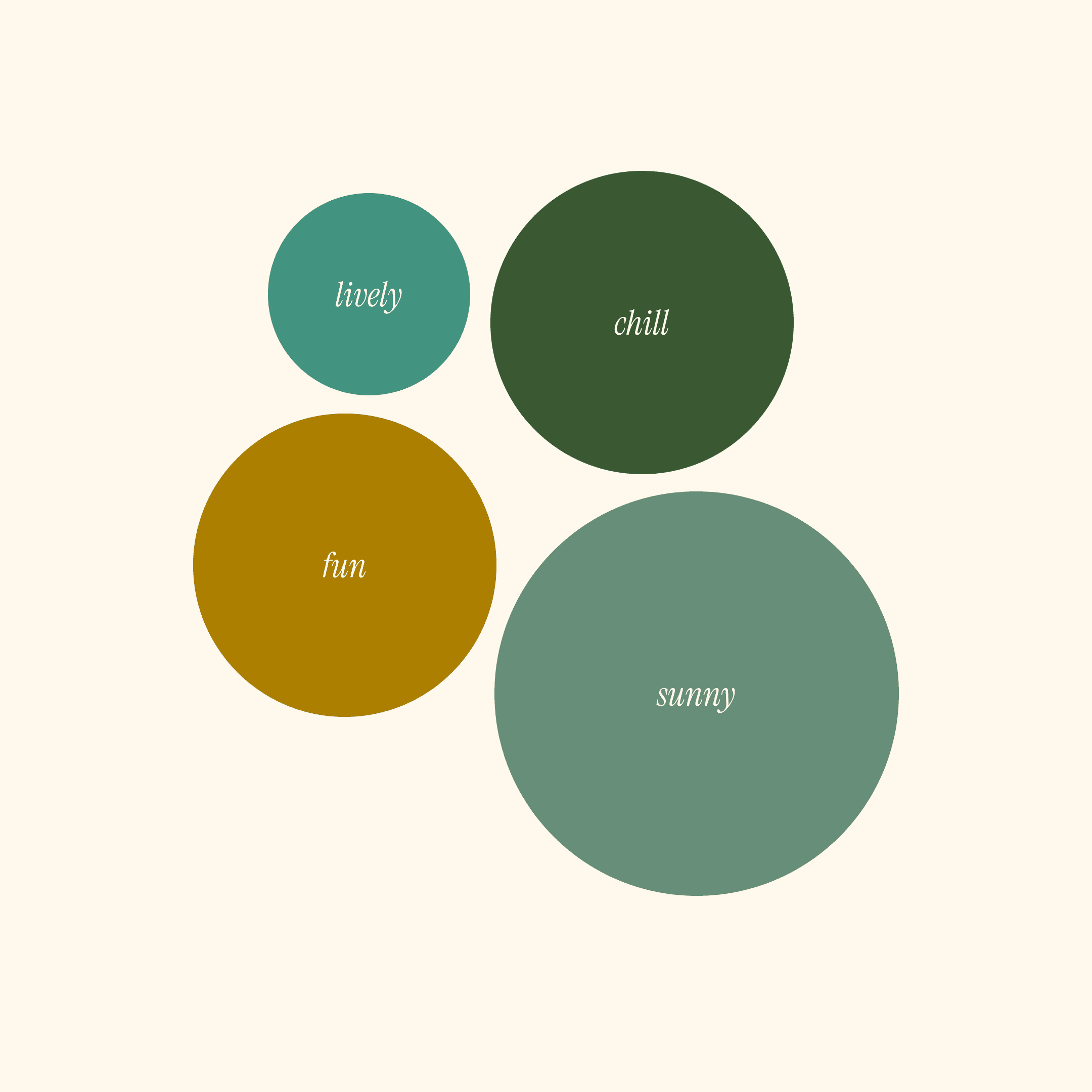 The frequency bubble chart reveals that students strongly associate the market with being “lively,” “chill,” “fun,” and “sunny.”