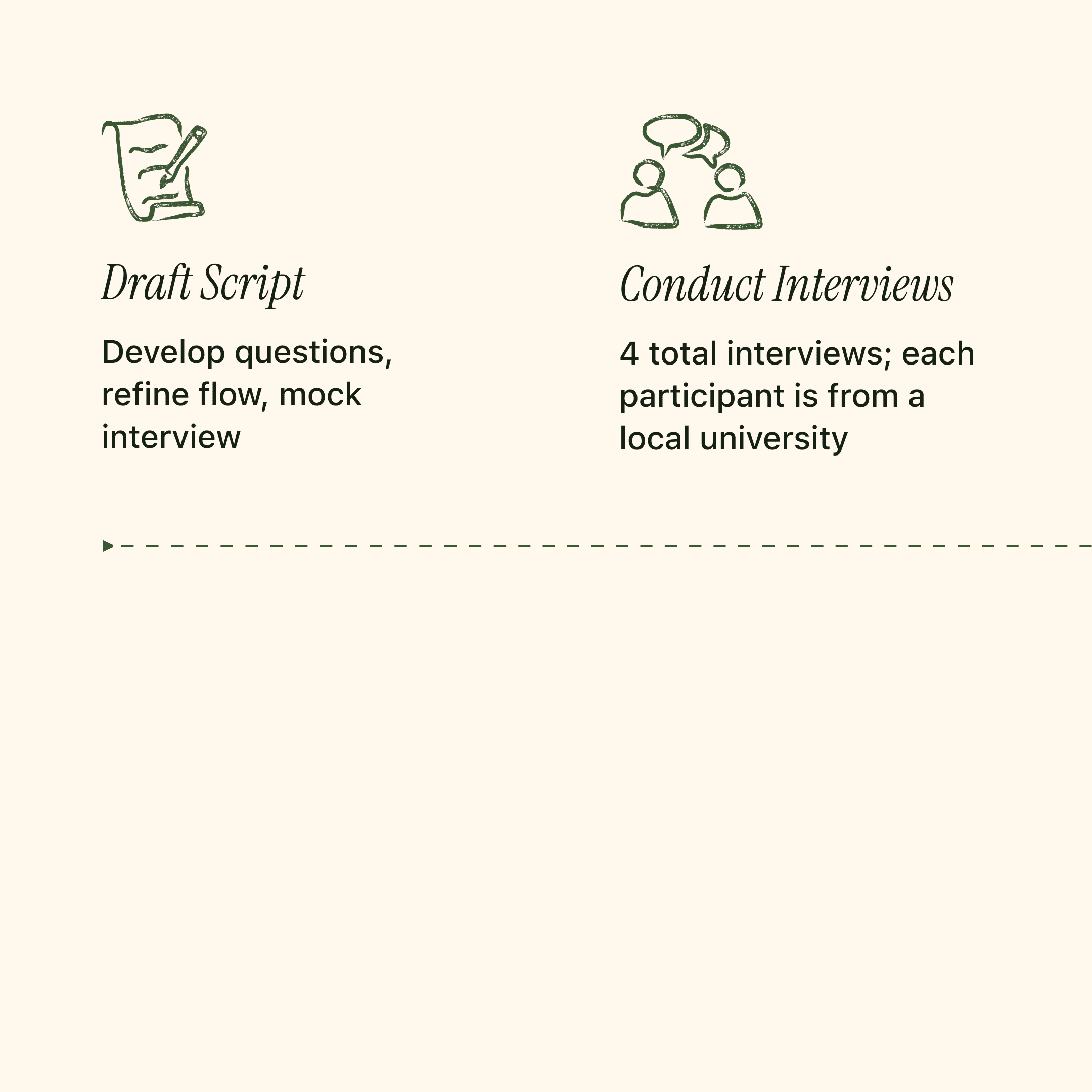 The interviews surfaced two primary visit modes (Mission and Leisure) and revealed opportunities to improve student engagement through better digital and physical touchpoints.