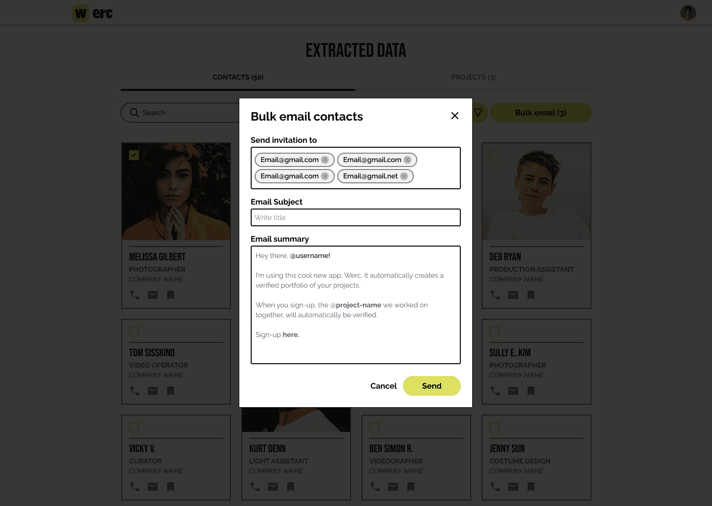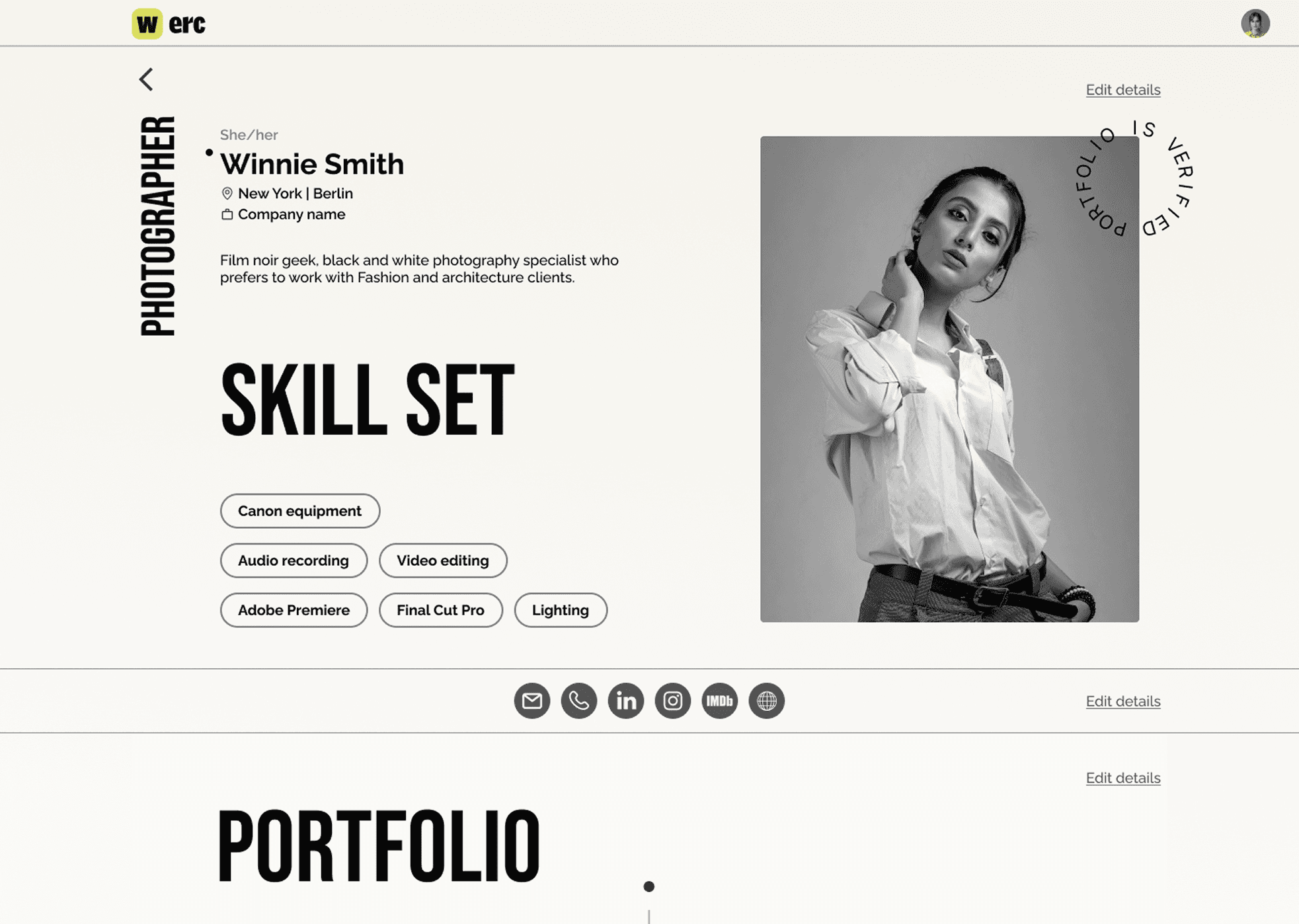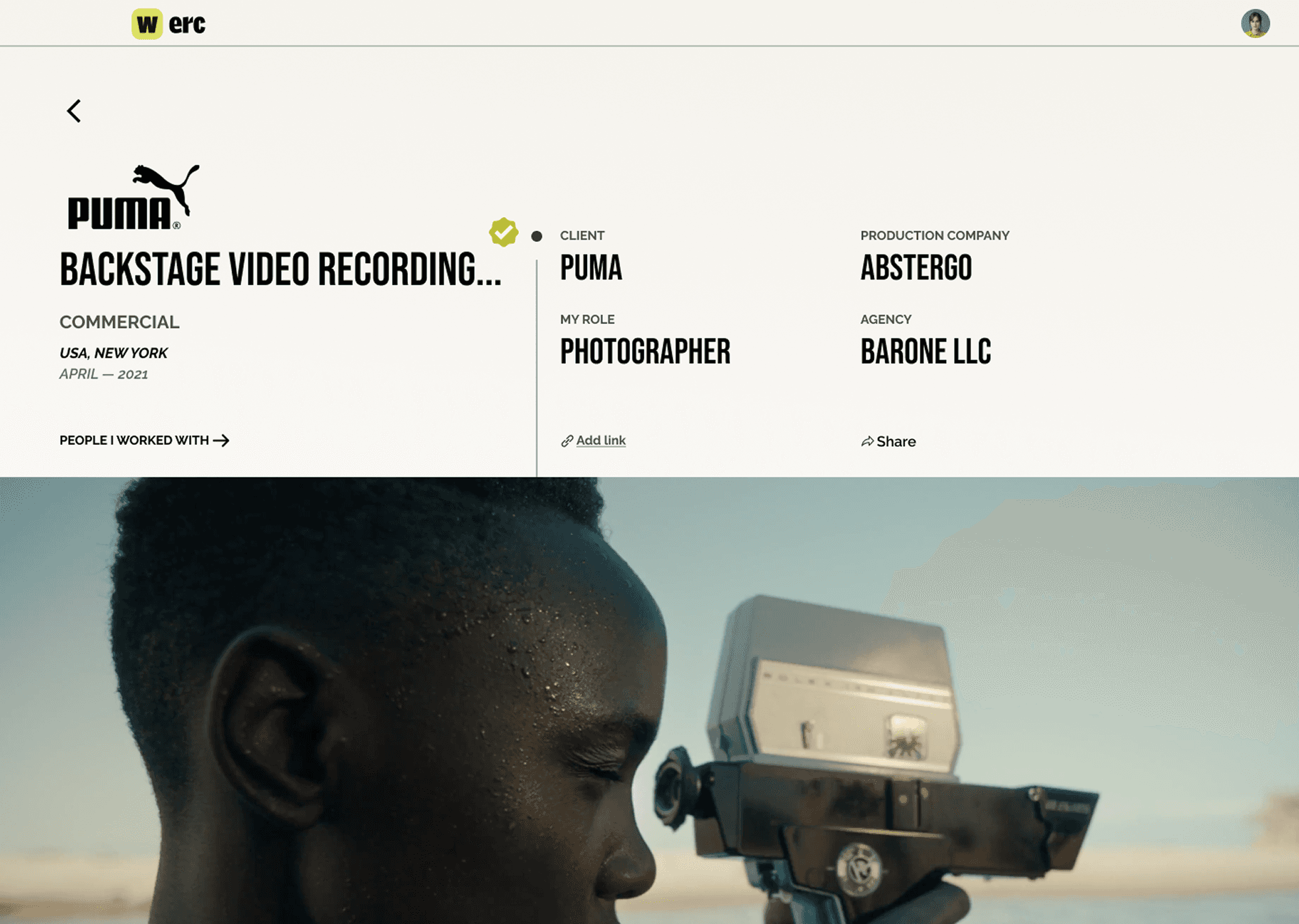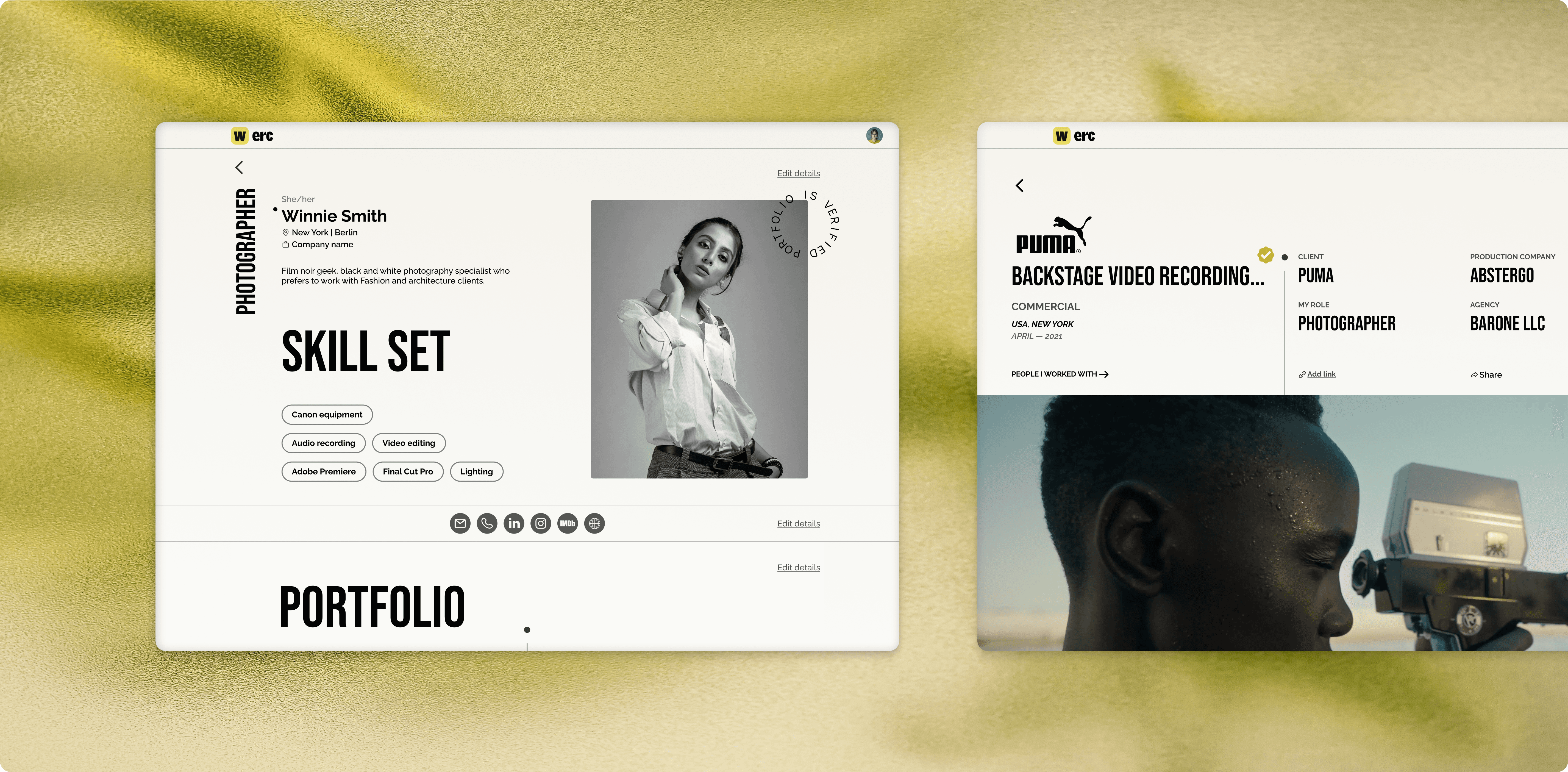 A platform for streamlined portfolio management, networking, and film crew coordination. Werc is a New York based start-up aiming to improve the recruitment process for everyone involved.